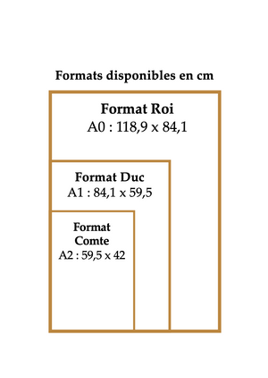 Roi (A0 : 118x84cm), Duc (A1 : 84x59cm), Comte (A2 : 59x42cm) |
